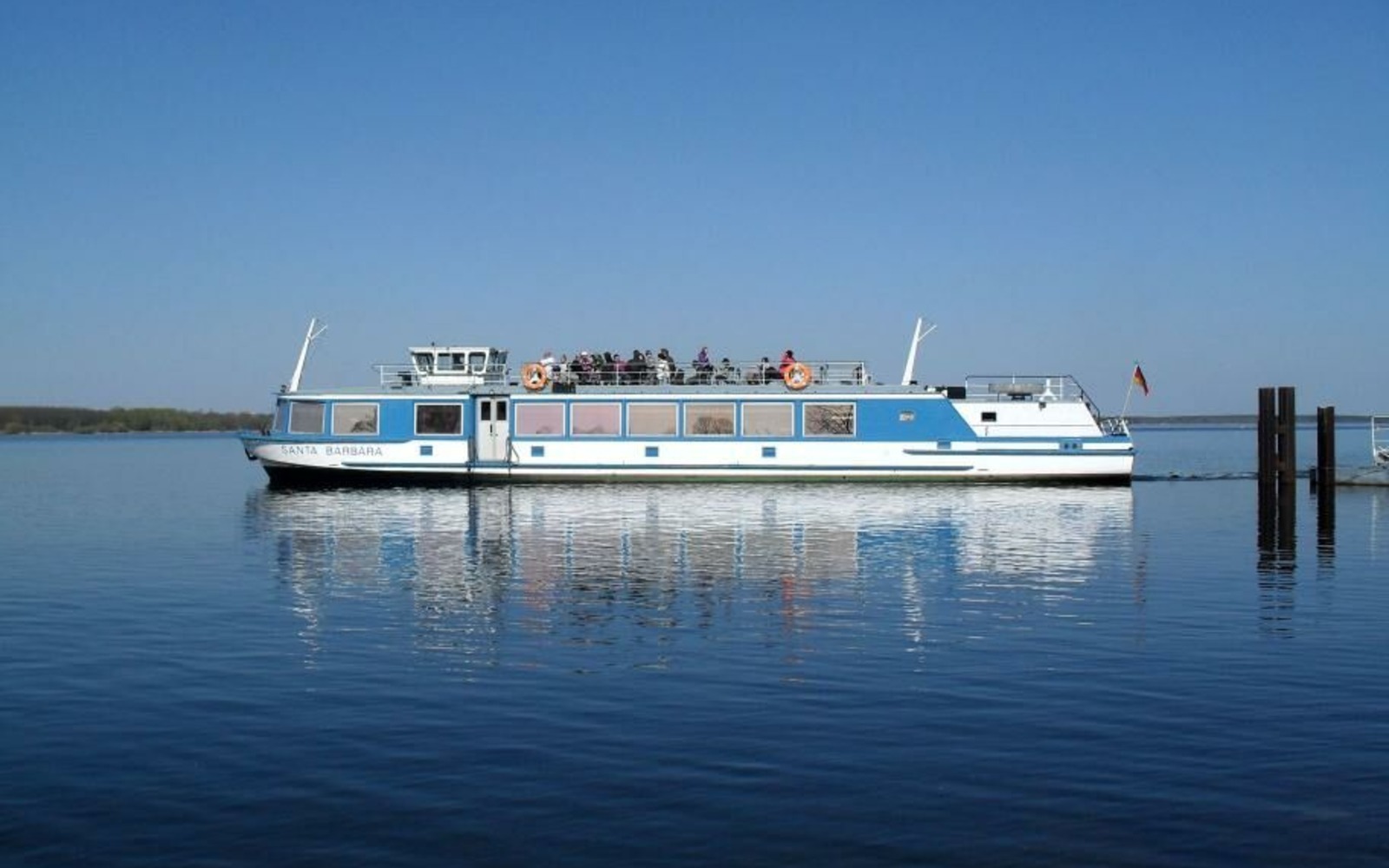 Poznejte Lužickou jezerní krajinu z té nejkrásnější perspektivy a vychutnejte si panoramatický výhled na celé jezero během plavby výletní lodí rejdařství Löwa. Na palubě lodi Santa Barbara si mohou hosté vychutnávat jak okružní plavby po jezeře Senftenberger See, tak se rychle dopravovat z místa na místo linkovými spoji. Domovský přístav výletní lodi se nachází v Großkoschenu, přistoupit však lze také v Senftenbergu v městském přístavu (v blízkosti zooparku) a v přístavišti Niemtsch. Loď Santa Barbara má kapacitu po 20 a 50 místech ve dvou saloncích v podpalubí a 40 míst na horní palubě. Okružní plavba trvá zhruba 75 minut. Během linkových a okružních plaveb je Vám na palubě k dispozici nabídka nápojů a malé občerstvení, a to jak v hlavní sezóně, tak mimo ni.
