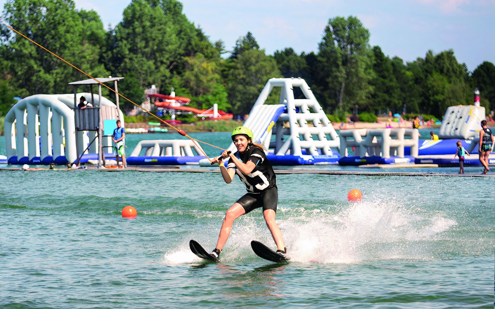 Aquapark: Hned vedle areálu vodních lyží a wakeboardů se nachází aquapark pro malé i velké. Zaručená zábava na téměř 1000 m² akční plochy. Kromě 5 m vysokých skluzavek, lezeckých stěn a vodních trampolín je zde také hřiště pro nejmenší.