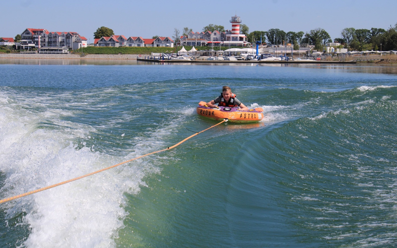 Součástí nabídky je také "jízda na tubě", kdy se za člunem táhne vzduchem naplněný polštář, a je to skvělá zábava pro malé i velké.