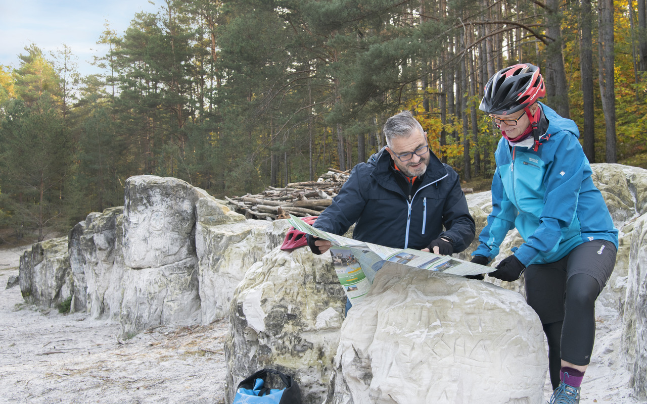 Die Radtour in die Bucksche Schweiz ist besonders für Naturliebhaber ein Vergnügen. Unterwegs im drei Hektar großen Flächennaturdenkmal südlich des Senftenberger Sees radelt man durch unendlich scheinende Wälder, die viele Wanderer und Läufer anlocken und als pilzreich gelten. Zuvor führt die Route in Hohenbocka am märchenhaften Schloss vorbei, das vor mehr als 100 Jahren erbaut wurde. Wenig später erreicht man am Prossenberg die sogenannten Felsen aus Glas. Die bizarren zwei bis drei Meter hohen Sandsteinfelsen aus erhärtetem Glassand bieten einen idealen Picknickplatz. Sie erinnern an die Felsformationen in der Sächsischen Schweiz. Der feine Quarzsand wird seit dem 19. Jahrhundert in der Gegend abgebaut und zur Herstellung von farblosem Glas verwendet. Anschließend führt die Tour weiter zum Senftenberger See. Hier garantiert der 31 Meter hohe Schiefe Turm beste Aussichten auf das glasklare Wasser, die Naturschutzinsel im See und die dichten Kiefernwälder. Mit 10 Grad Neigungswinkel ist der Turm schiefer als sein Pendant in Pisa.