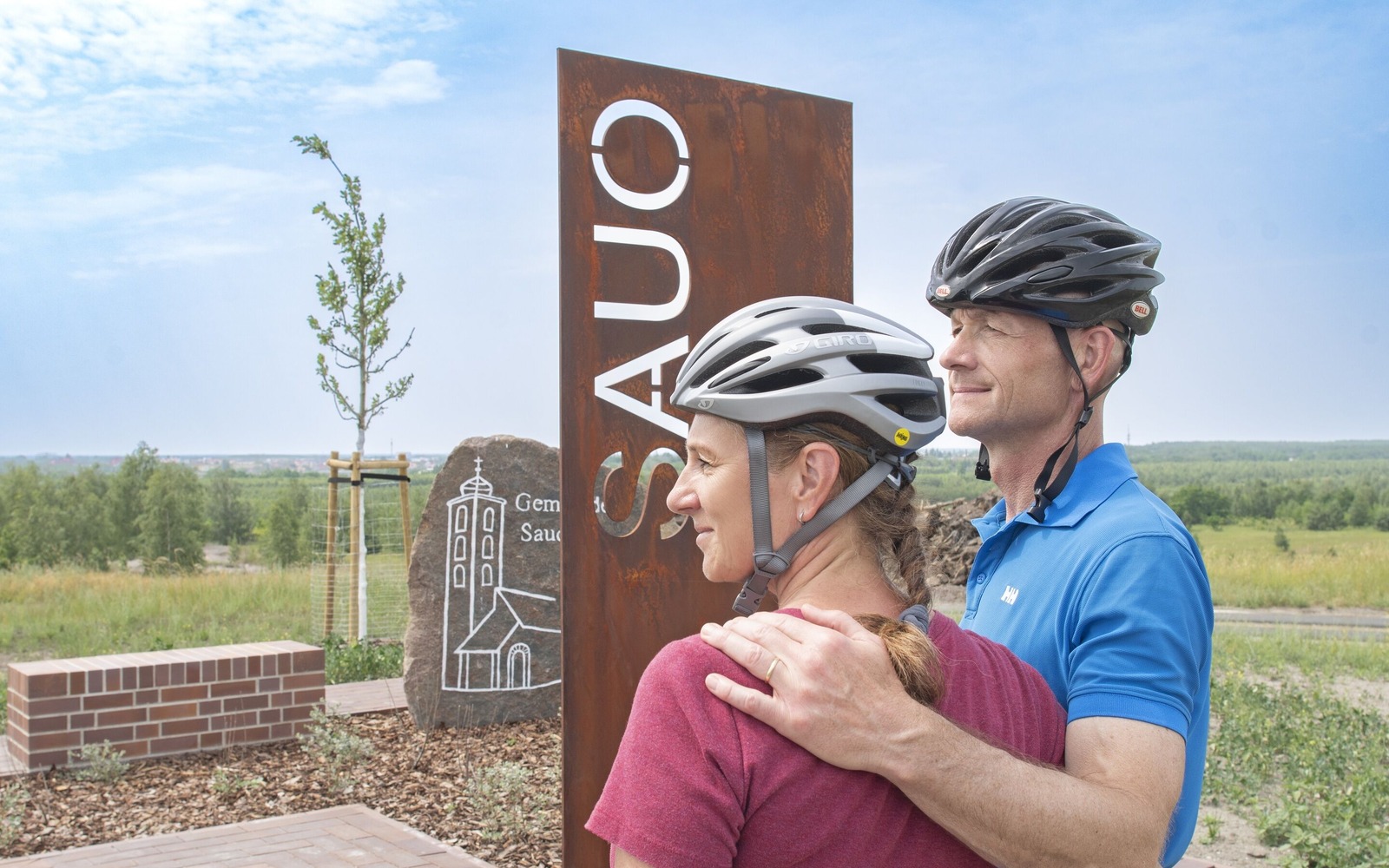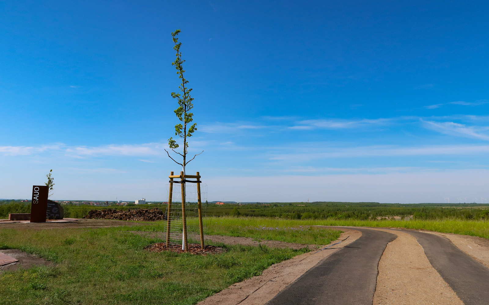 Als weiteres Symbol der Bergbauregion steht am Aussichtspunkt ein Stahlgestell des Lauchhammerwerks inklusive Baggereimer.