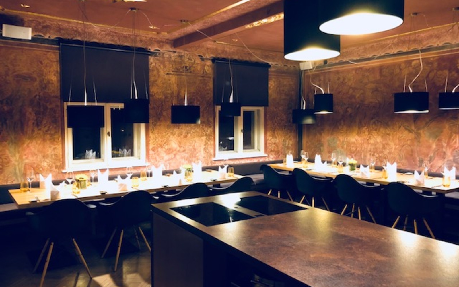 Das Obergeschoss bietet bis zu 21 Gästen Platz für Feierlichkeiten und Meetings. Hier finden Live-Cooking-Events und regelmäßig Kochkurse statt. Unter Anleitung eines Koch-Coachs kreieren Gäste dabei selbst ein 3- bis 4- Gänge-Menü, das am Küchenstil des Restaurants angelehnt ist und erleben einen unvergesslichen Abend.