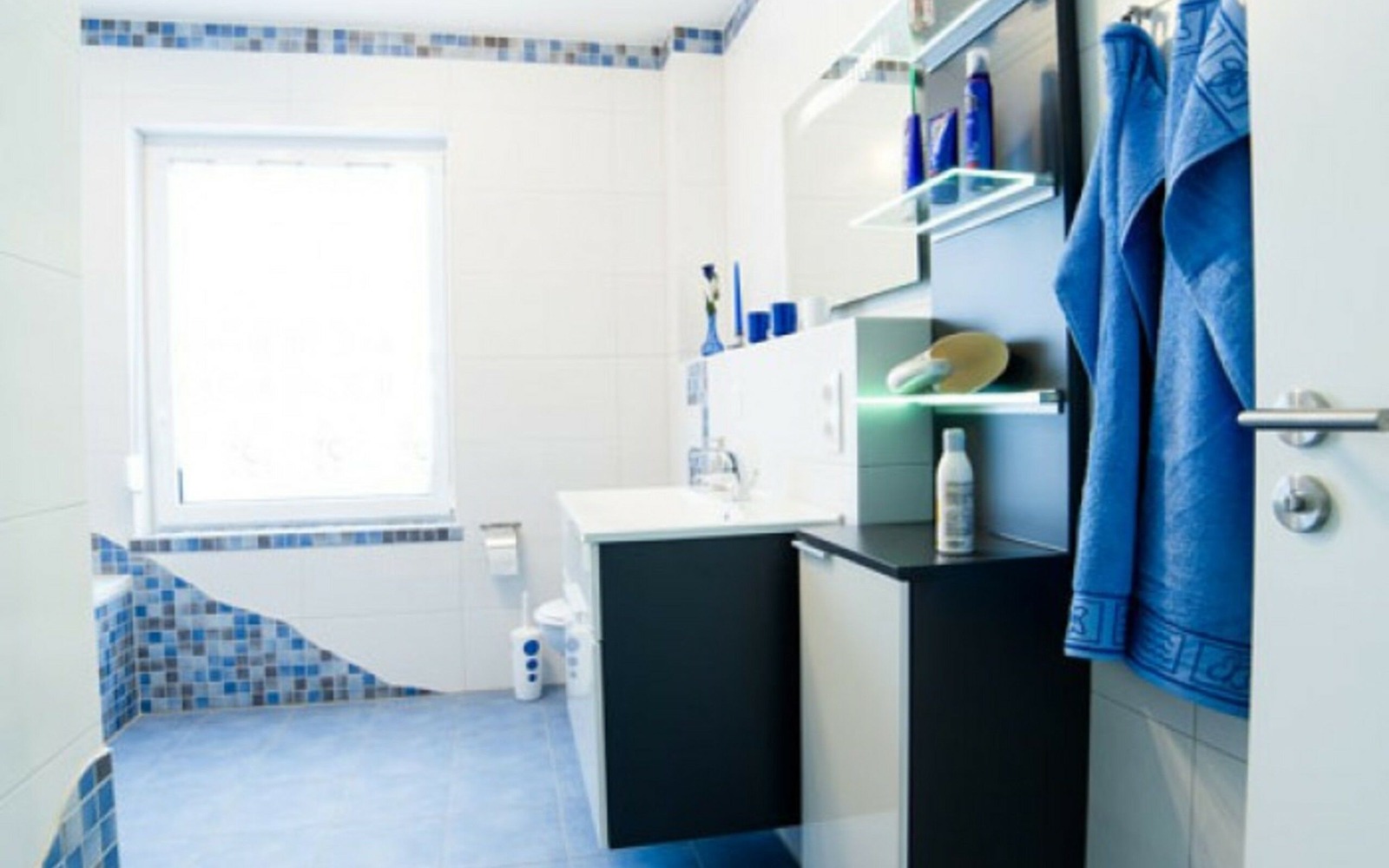 Badezimmer mit ebenerdiger Dusche, Foto: Strandhaus Eden