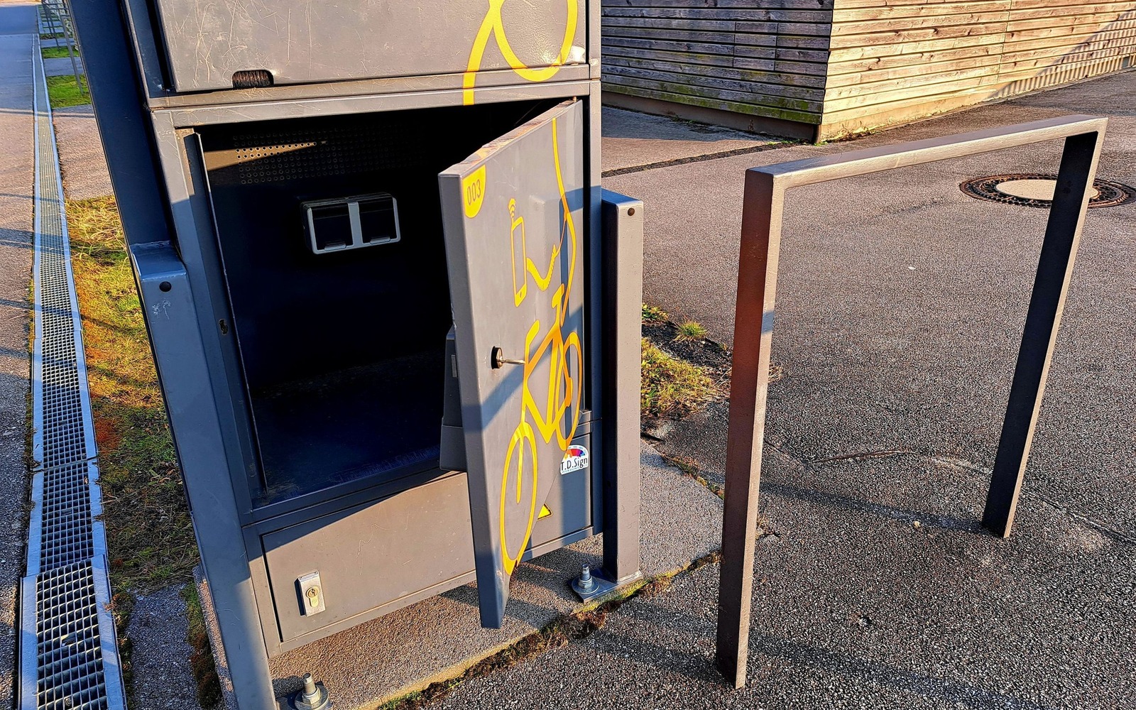 Schließfach mit Stromanschluss und Radständer, Foto: N. Dittrich, Lizenz: Tourismusverband Lausitzer Seenland e.V.