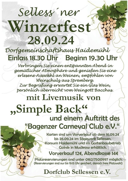 Erleben Sie das Winzerfest, ein Highlight für Weinliebhaber und Genussfreunde! Tauchen Sie ein in eine Welt erlesener Weine, präsentiert von Weinschulz Spremberg. Von spritzigen Weißweinen bis hin zu vollmundigen Rotweinen – hier ist für jeden Geschmack etwas dabei.