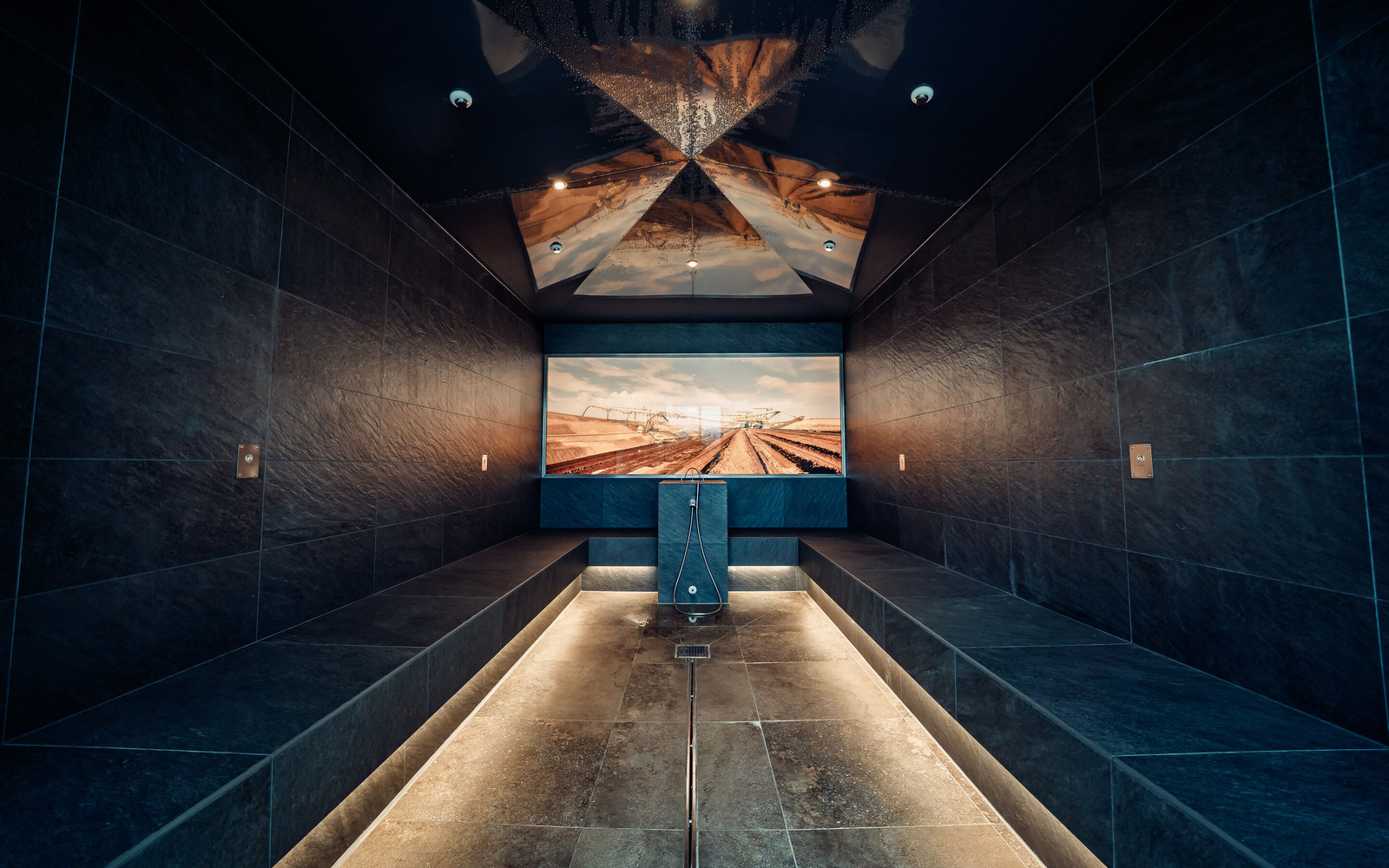 Zur Erfrischung nach jedem Saunagang bietet der Wellnessduschbereich mit verschiedenen Duschvarianten und Eisbrunnen, ein Kalttauchbecken mit ca. 12°C und ein Solebecken im Außenbereich eine schöne Abwechslung.