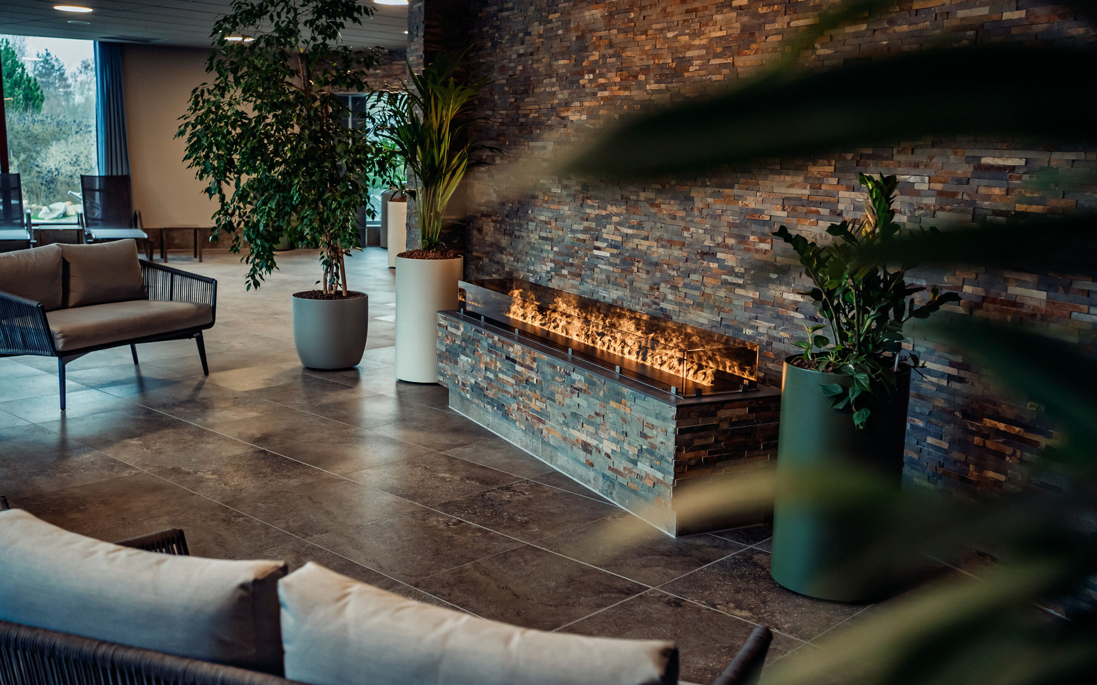 Ein Highlight ist das traumhafte Saunadorf mit rustikalen Blockhäusern und integrierten finnischen Saunen. Naturliebhaber können am Gartenteich mit Bachlauf in harmonischer Atmosphäre zur Ruhe kommen und Energie schöpfen.