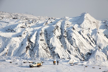 Mit dem Jeep durch den aktiven Tagebau im Winter, Foto: Siegfried Laumen