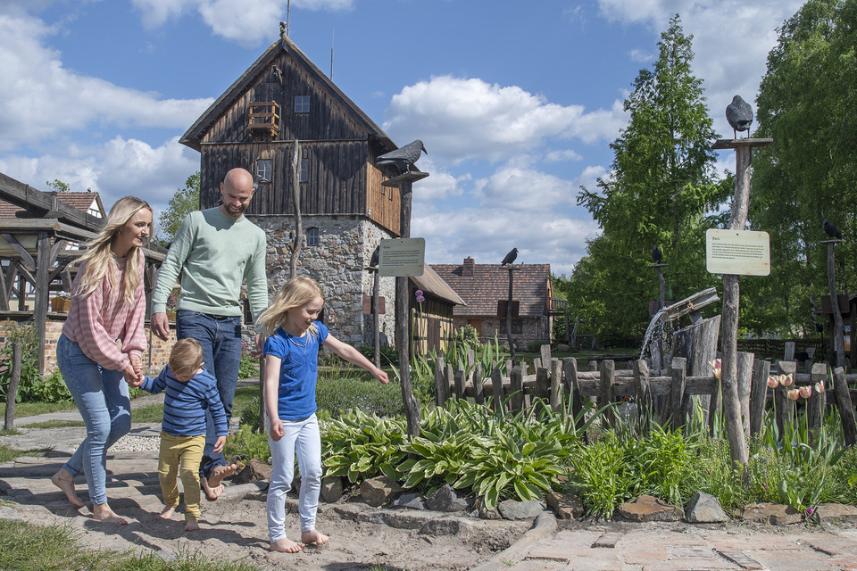 • Familie an der KRABAT-Mühle Schwarzkollm© Tourismusverband Lausitzer Seenland, Nada Quenzel (JPG; 2,60 MB)