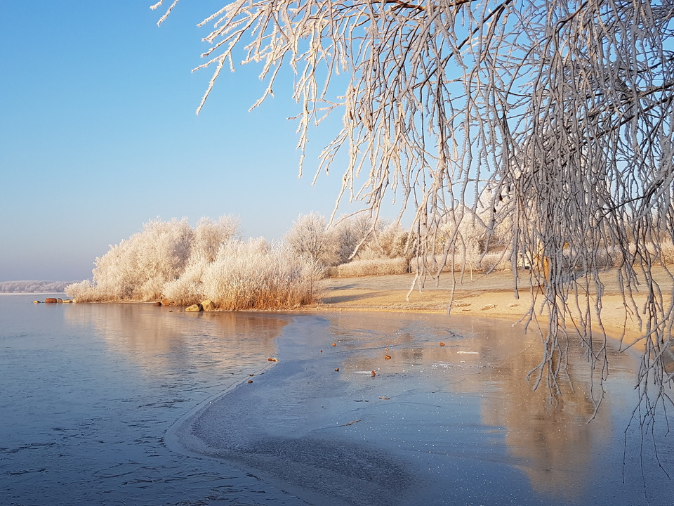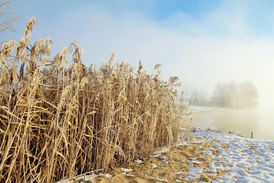 Schilf am Ufer des winterlichen Senftenberger Sees, Foto: Kathrin Winkler