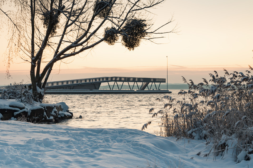 Seebrücke am Stadthafen Senftenberg im Winter, Foto: Kathrin Winkler
