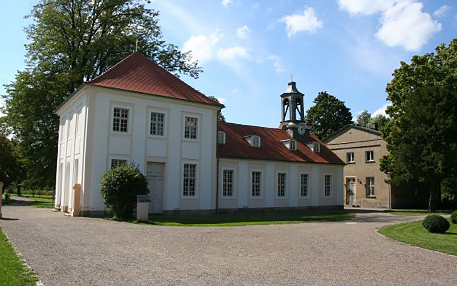 The former castle church from 1746 is also worth a visit. Instead of a bell tower, it only has a modest ridge turret, as it was adapted to the exterior of the former orangery in order to create a harmonious ensemble of buildings. The interior is in the rococo style, which is rare for churches. Concerts and other events are held in the church.