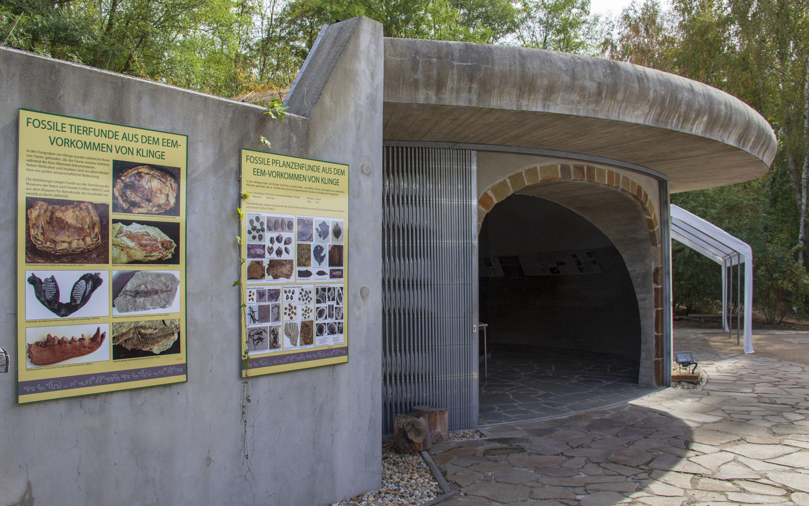 The ”Zeitsprung“ open-air museum is located on a former excavation site near the future Lake Klinger See, currently in the process of being flooded. Between 1985 to 2003, Eemian Warm Period sea deposits from the Pleistocene era were examined here in a geological-palaeontological excavation site. The most important finding was that of an almost completely preserved mammoth skeleton – the first to be discovered in Germany. The site is now a nature conservation area and can be visited as part of the museum. Among other things, the museum explains the individual sedimentary layers, and objects from the Eemian deposits are on display. A replica of the baby mammoth, the bones of which are on display in the Natural History Museum in Berlin, is on show in a small shelter. A viewing platform provides a magnificent view of the future Lake Klinger See, currently being formed by flooding the Jänschwalde surface mine.