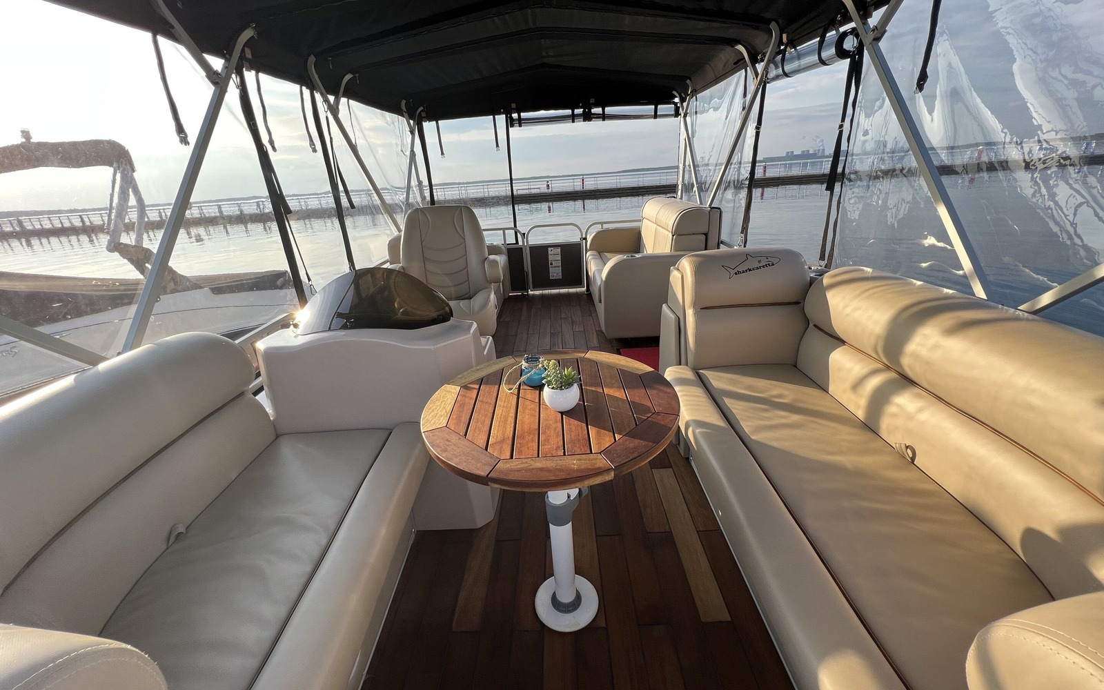 Licence-free pontoon boat "STAR Cruiser", Foto: Bootcharter Lausitz, Lizenz: Bootcharter Lausitz